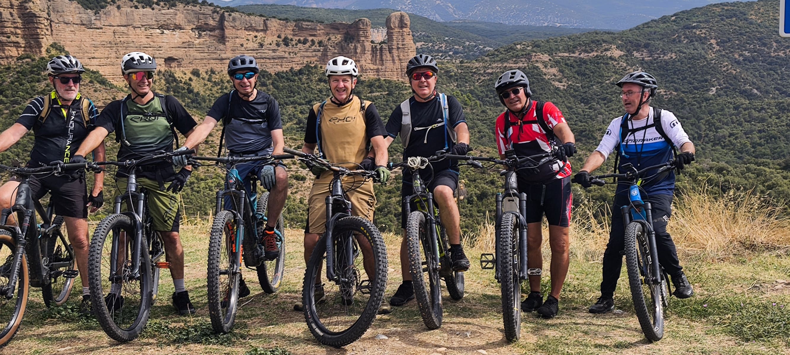 Descubrir la Sierra de Guara en bicicleta eléctrica de montaña es una experiencia que combina aventura, naturaleza y diversión. Las e-bikes permiten recorrer senderos panorámicos, bosques mediterráneos y contemplar desde lo alto los barrancos más emblemáticos del Parque Natural. Algunas rutas cruzan ríos y barrancos de aguas cristalinas, aportando un toque emocionante y refrescante a la jornada.